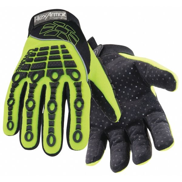 Hi-Vis Cut Resistant Impact Gloves, A8 Cut Level, Uncoated, XS, 1 PR