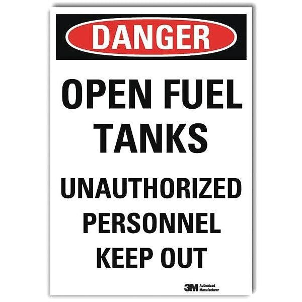 Danger Sign, 14 in H, 10 in W, Reflective Sheeting, Vertical Rectangle, English, U3-1881-RD_10X14SKU G2740836Categories SafetyDescription Danger Sign, Vertical Rectangle, Number of Printed Sides 1, English, Sign Format Traditional OSHA, Sign Legend Open Fuel Tanks Unauthorized Personnel Keep Out, Sign Legend Background Color White, Sign Legend Style TextgraingerSKU: 34NE66, mscSKU: , zoro_no: G2740836, mongo_id: 65bbe6973aaddbd5a903d494