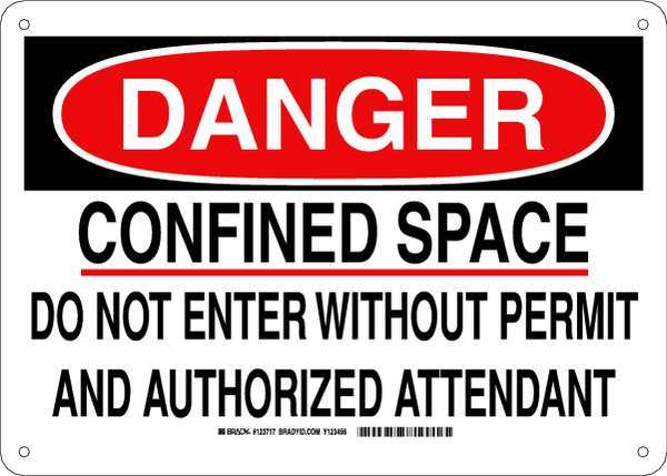 Danger Sign 10X14, Legend: Confined Space Do Not Enter Without Permit And Authorized Attendant