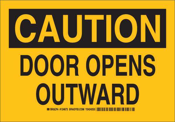 SKU G8629350Categories SafetyDescription Caution Sign, Sign Subject Matter Door Instruction, Height 10 In., Width 14 In., Sign Material Aluminum, Header Caution, Legend Door Opens Outward, Printed Language English, Sign Shape Rectangle$32.11 / eachWeb priceCaution Sign, 10X14", Black/Yellow, 124674SKU G8629350Categories SafetyDescription Caution Sign, Sign Subject Matter Door Instruction, Height 10 In., Width 14 In., Sign Material Aluminum, Header Caution, Legend Door Opens Outward, Printed Language English, Sign Shape Rectangle$32.11 / eachWeb price -
