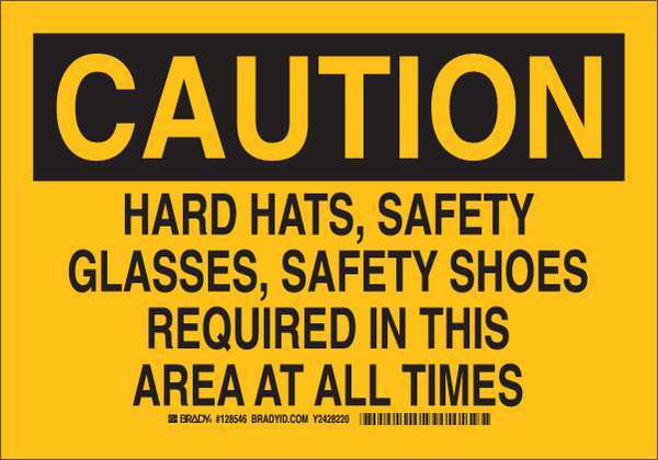 SKU G7424142Categories SafetyDescription Caution Sign, Sign Subject Matter Personal Protection, Height 7 in, Width 10 in, Sign Material Plastic, Header Caution, Legend Hard Hats, Safety Glasses, Safety Shoes Required In This Area At All Times, Printed Language English, Sign Shape Rectangle$11.94 / eachWeb priceCaution Sign, 7X10", Black/Yellow, 128545SKU G7424142Categories SafetyDescription Caution Sign, Sign Subject Matter Personal Protection, Height 7 in, Width 10 in, Sign Material Plastic, Header Caution, Legend Hard Hats, Safety Glasses, Safety Shoes Required In This Area At All Times, Printed Language English, Sign Shape Rectangle$11.94 / eachWeb price -