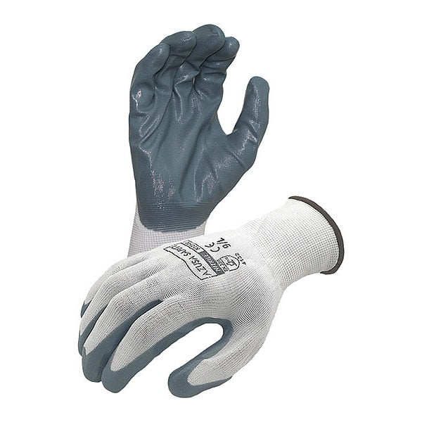 $1.24 / eachWeb priceEconomy 13 ga. White Nylon Gloves, Gray Flat Nitrile Palm Coating, SSKU G7806117Categories SafetyDescription Gloves,Flat,Nitrile Coated,S,PR, 1 PairgraingerSKU: , mscSKU: , zoro_no: G7806117, mongo_id: 65bbe97422d7a989a99574c3