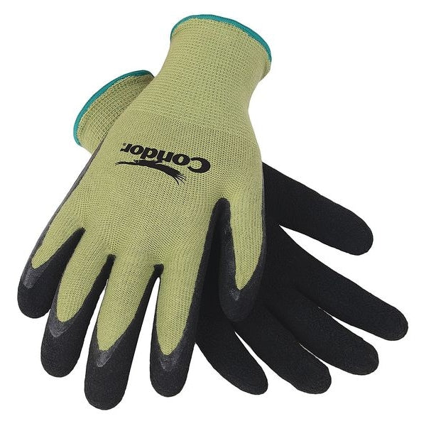 Natural Rubber Latex Coated Gloves, Palm Coverage, Black/Green, L, PR
