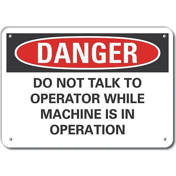 SKU G9497890Categories SafetyDescription Danger Sign, Horizontal Rectangle, Number of Printed Sides 1, English, Sign Format Traditional OSHA, Sign Legend Do Not Talk To Operator While Machine Is In Operation, Sign Legend Background Color White, Sign Legend Style TextgraingerSKU: 64RT98, mscSKU: , zoro_no: G9497890, mongo_id: 65bbe91d22d7a989a9935341