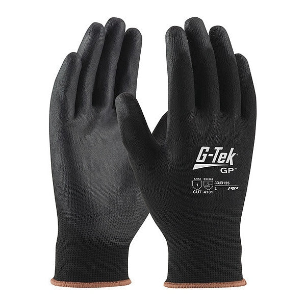 Polyurethane Coated Gloves, Palm Coverage, Black, 2XL, 12PK