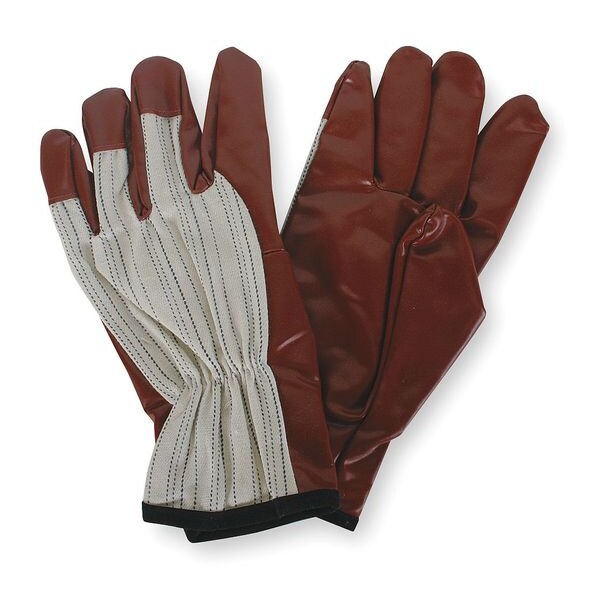 Nitrile Coated Gloves, Palm Coverage, White/Russet, M, PR