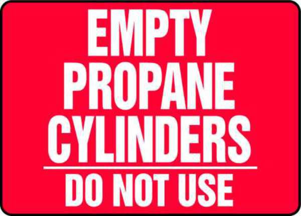 SKU G1715149Categories SafetyDescription Cylinder Sign, Sign Subject Matter Chemical, Gas or Hazardous Materials, Height 10 in, Width 14 in, Sign Material Aluminum, Sign Mounting Style With Mounting Holes, Header No Header, Legend Empty Propane Cylinders Do Not Use, Printed Language English, Sign Shape RectanglegraingerSKU: , mscSKU: , zoro_no: G1715149, mongo_id: 65bbe94522d7a989a9944280