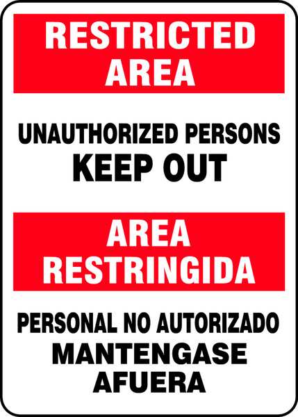 Spanish-Bilingual Restricted Area Sign, 14 in Height, 10 in Width, Plastic, Rectangle
