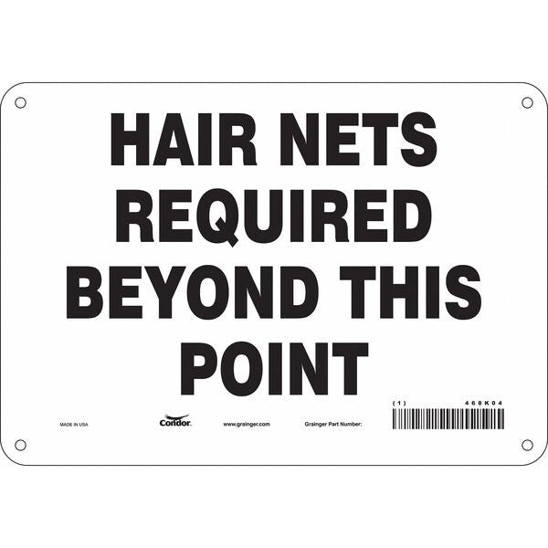SKU G5580598Categories SafetyDescription Safety Sign, Vertical Rectangle, Number of Printed Sides 1, English, Sign Legend Hair Nets Required Beyond This Point, Sign Legend Background Color White, Sign Legend Style TextgraingerSKU: 468K04, mscSKU: , zoro_no: G5580598, mongo_id: 65bbe6753aaddbd5a902f556