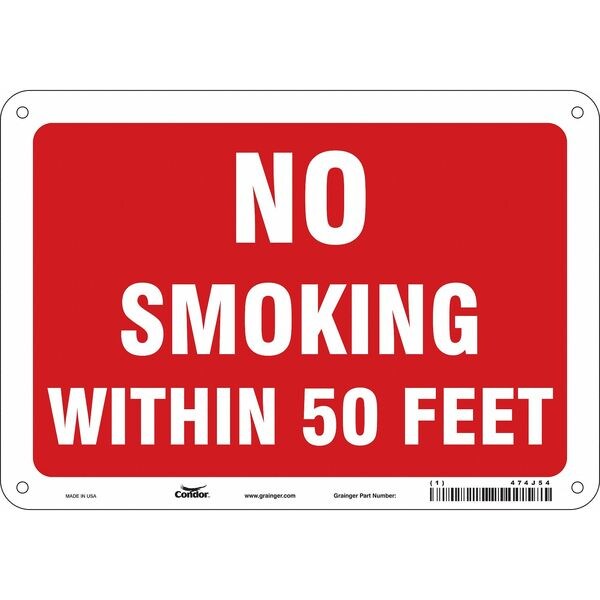 Safety Sign, 7" H, 10" W, Vertical Rectangle, English, 474J54SKU G5194721Categories SafetyDescription Safety Sign, Vertical Rectangle, Number of Printed Sides 1, English, Sign Format Other Format, Sign Legend No Smoking Within 50 Feet, Sign Legend Background Color Red, White, Sign Legend Style TextgraingerSKU: 474J54, mscSKU: , zoro_no: G5194721, mongo_id: 65bbe6753aaddbd5a902f5c0