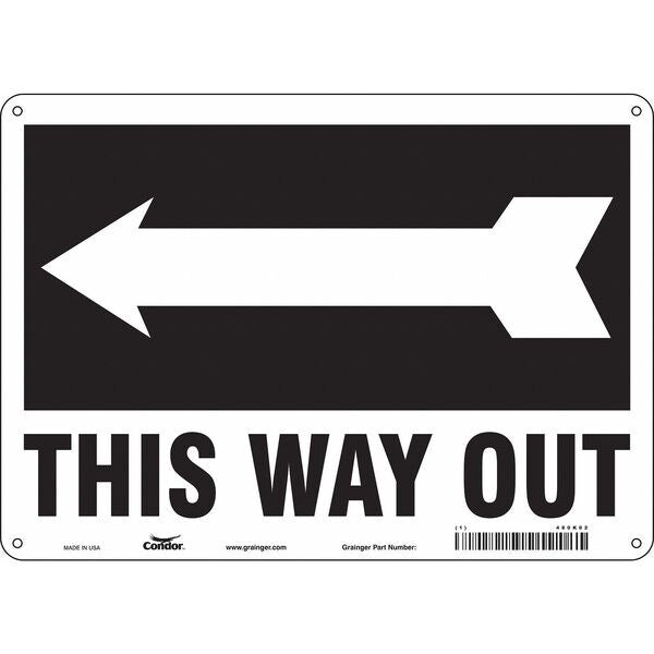 Safety Sign, 10 in Height, 14 in Width, Aluminum, Horizontal Rectangle, English, 480K02SKU G5868639Categories SafetyDescription Safety Sign, Horizontal Rectangle, Number of Printed Sides 1, English, Sign Legend This Way Out (Arrow), Sign Legend Background Color Black, White, Sign Legend Style Symbol and TextgraingerSKU: 480K02, mscSKU: , zoro_no: G5868639, mongo_id: 65bbe6753aaddbd5a902f61f