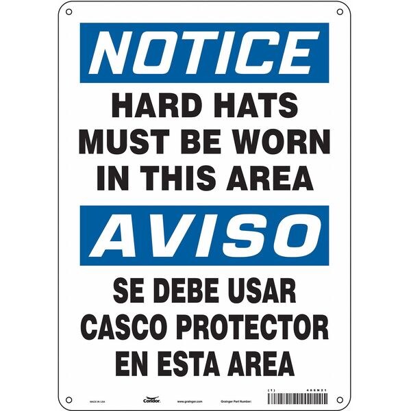 Safety Sign, 14 in Height, 10 in Width, Aluminum, Vertical Rectangle, English, Spanish, 466N21SKU G5611678Categories SafetyDescription Safety Sign, Vertical Rectangle, Number of Printed Sides 1, English, Spanish, Sign Format Traditional OSHA, Sign Legend Hard Hats Must Be Worn In This Area/Se Debe Usar Casco Protector En Esta Area, Sign Legend Background Color White, Sign Legend Style TextgraingerSKU: 466N21, mscSKU: , zoro_no: G5611678, mongo_id: 65bbe6753aaddbd5a902f3c1