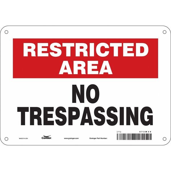 SKU G5578349Categories SafetyDescription Safety Sign, Vertical Rectangle, Number of Printed Sides 1, English, Sign Format Other Format, Sign Legend No Trespassing, Sign Legend Background Color Red, White, Sign Legend Style TextgraingerSKU: 473M35, mscSKU: , zoro_no: G5578349, mongo_id: 65bbe6753aaddbd5a902f3c0