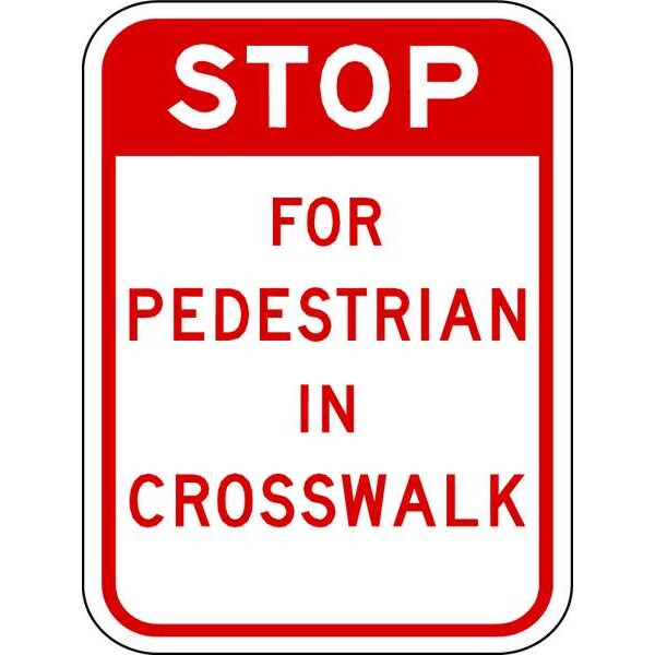 Stop For Pedestrians In Crosswalk Sign, 18" W, 24" H, English, Aluminum, Red, White