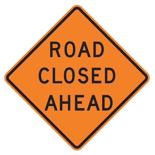 Road Closed Ahead Traffic Sign, 30 in Height, 30 in Width, Aluminum, Diamond, English