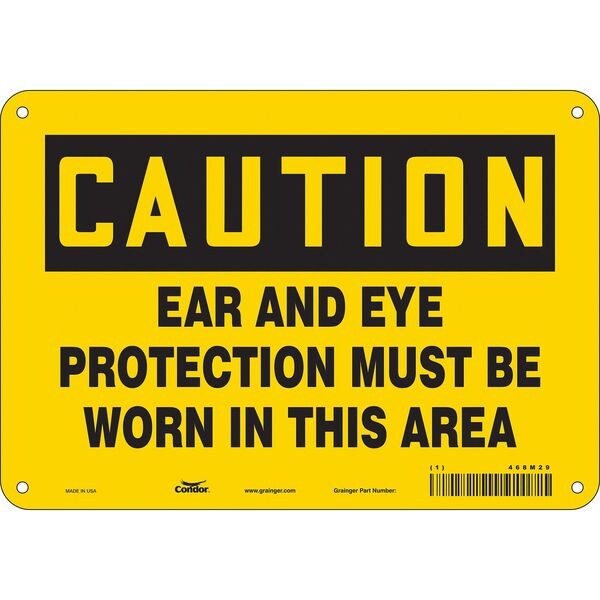 Safety Sign, 7 in Height, 10 in Width, Aluminum, Vertical Rectangle, English, 468M29SKU G5556999Categories SafetyDescription Safety Sign, Vertical Rectangle, Number of Printed Sides 1, English, Sign Format Traditional OSHA, Sign Legend Ear And Eye Protection Must Be Worn In This Area, Sign Legend Background Color Yellow, Sign Legend Style TextgraingerSKU: 468M29, mscSKU: , zoro_no: G5556999, mongo_id: 65bbe85f9a749db82278a1bf