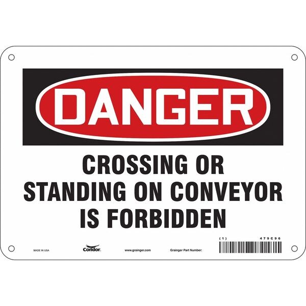 SKU G5774452Categories SafetyDescription Safety Sign, Vertical Rectangle, Number of Printed Sides 1, English, Sign Format Traditional OSHA, Sign Legend Crossing Or Standing On Conveyor Is Forbidden, Sign Legend Background Color White, Sign Legend Style TextgraingerSKU: 479C96, mscSKU: , zoro_no: G5774452, mongo_id: 65bbe85f9a749db82278a1ad