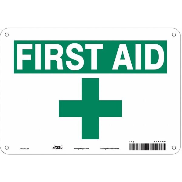 First Aid Sign, 10" W x 7" H, 0.032" Thick, 471V09