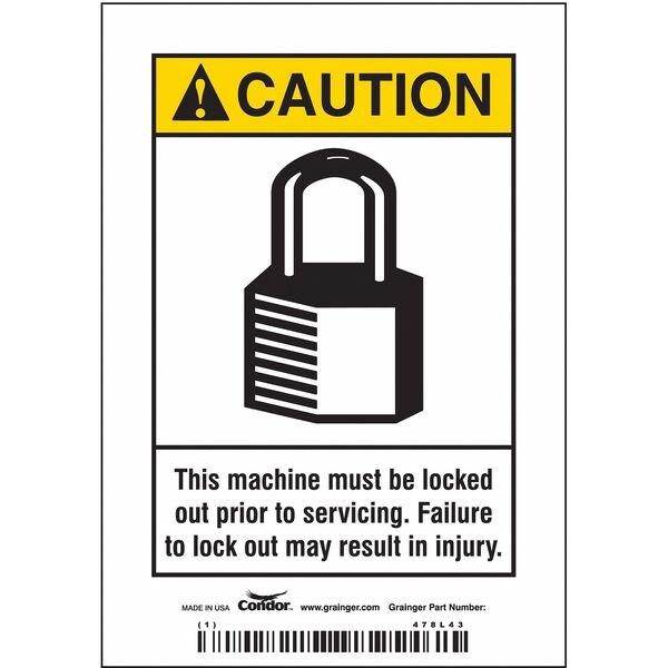 Safety Sign, 5 in Height, 3 1/2 in Width, Vinyl, Vertical Rectangle, EnglishSKU G5600870Categories SafetyDescription Safety Sign, Vertical Rectangle, Number of Printed Sides 1, English, Sign Format ANSI/OSHA Format, Sign Legend This Machine Must Be Locked Out Prior To Servicing. Failure To Lock Out May Result In Injury., Sign Legend Background Color White, Sign Legend Style Symbol and TextgraingerSKU: 478L43, mscSKU: , zoro_no: G5600870, mongo_id: 65bbe85f9a749db82278a13a