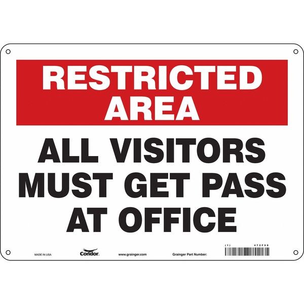Safety Sign, 10 in Height, 14 in Width, Aluminum, Horizontal Rectangle, English, 472F98SKU G5059673Categories SafetyDescription Safety Sign, Horizontal Rectangle, Number of Printed Sides 1, English, Sign Format Other Format, Sign Legend All Visitors Must Get Pass At Office, Sign Legend Background Color Red, White, Sign Legend Style TextgraingerSKU: 472F98, mscSKU: , zoro_no: G5059673, mongo_id: 65bbe85f9a749db82278a088