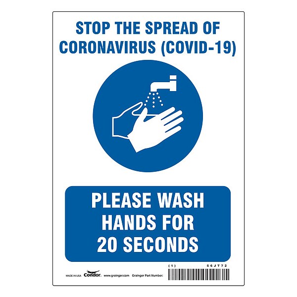 Stop The Spread Of Coronavirus Sign, 7" W x 10" H, English, PolyesterSKU G6619908Categories SafetyDescription Stop The Spread Of Coronavirus Sign, Sign Subject Matter Coronavirus Prevention, Height 10 in, Width 7 in, Sign Material Polyester, Sign Mounting Style Adhesive Surface, Header No Header, Legend Stop The Spread Of Coronavirus (COVID-19) Please Wash Hands For 20 Seconds, Printed Language English, Sign Shape RectanglegraingerSKU: , mscSKU: , zoro_no: G6619908, mongo_id: 65bbe85f9a749db822789f2e