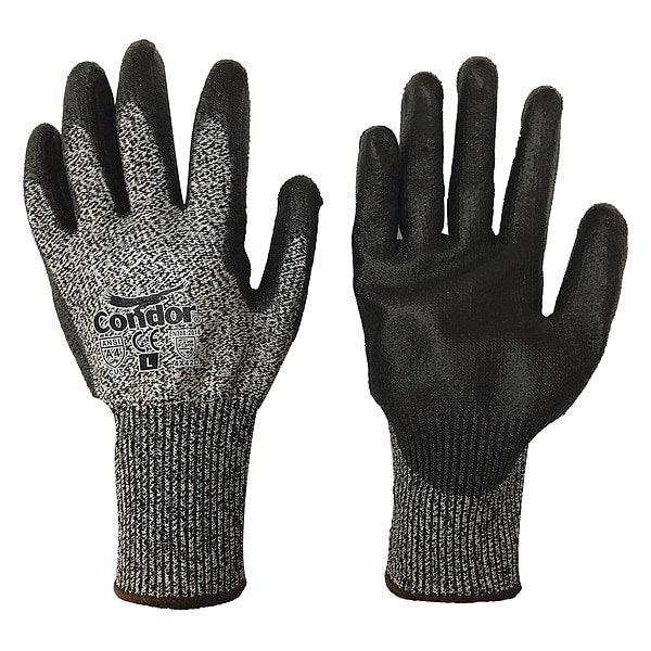 Cut-Resistant Coated Gloves, Palm Dipped, Polyurethane, A4 Cut Level, Black, Large (Size 9), 1 Pair