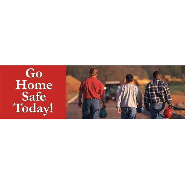 SKU G8162813Categories SafetyDescription Safety Banner, Shape Horizontal Rectangle, Safety Banner Legend Go Home Safe Today!, Sign Legend Style Symbol and Text, Printed Language English, Background Color Black, Number of Printed Sides 1, Width 96 in, Height 28 in, Thickness 0.013 ingraingerSKU: 8GF66, mscSKU: , zoro_no: G8162813, mongo_id: 65bbe87122d7a989a98f6961