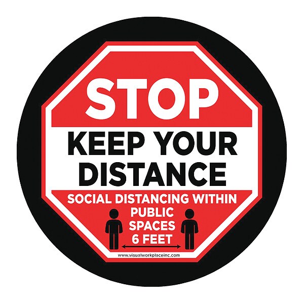SKU G8339704Categories SafetyDescription Social Distance Floor Sign, Sign Subject Matter Social Distancing, Height 17 in, Width 17 in, Sign Material Vinyl, Sign Mounting Style Adhesive Surface, Header Stop, Legend Keep Your Distance Social Distancing Within Public Spaces 6 Ft, Printed Language English, Sign Shape CirclegraingerSKU: , mscSKU: , zoro_no: G8339704, mongo_id: 65bbe85f22d7a989a98ee2ac