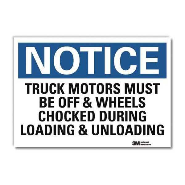 Notice Sign, 7 in H, 10 in W, Reflective Sheeting, Vertical Rectangle, English, U5-1582-RD_10X7SKU G2756428Categories SafetyDescription Notice Sign, Vertical Rectangle, Number of Printed Sides 1, English, Sign Format Traditional OSHA, Sign Legend Truck Motors Must Be Off & Wheels Chocked During Loading & Unloading, Sign Legend Background Color White, Sign Legend Style TextgraingerSKU: 34JY61, mscSKU: , zoro_no: G2756428, mongo_id: 65bbe85f9a749db822789c9d