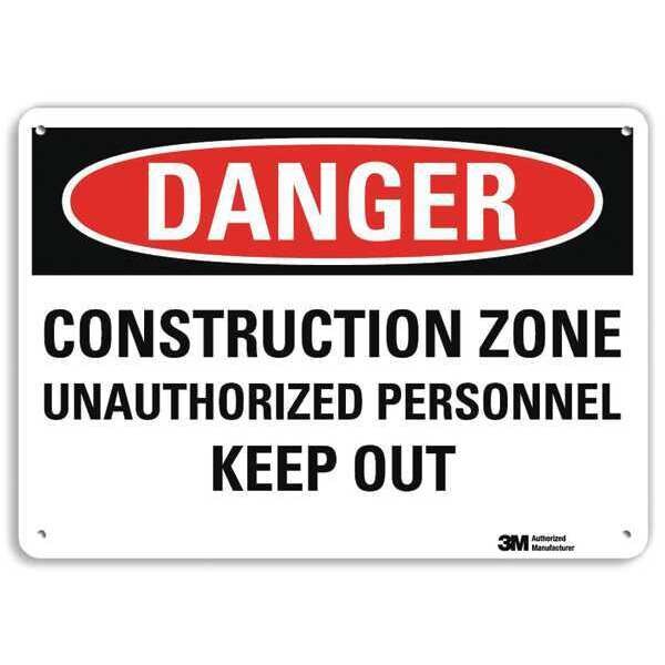 Construction Sign, 10 in H, 14 in W, Aluminum, Horizontal Rectangle, English, 485X23