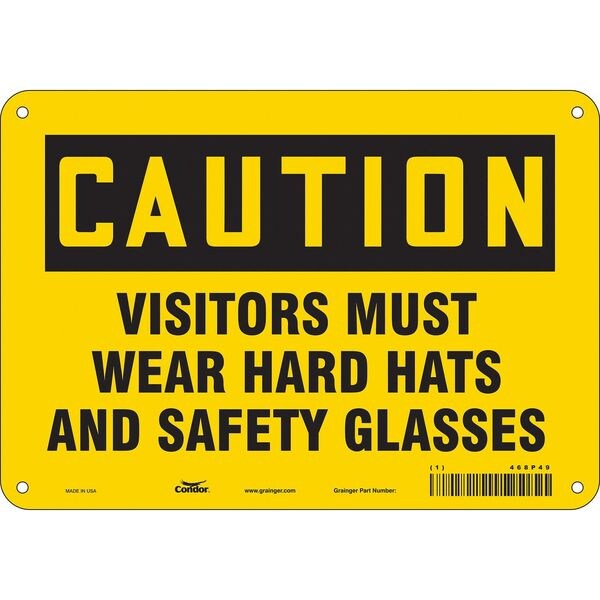 SKU G5639632Categories SafetyDescription Safety Sign, Vertical Rectangle, Number of Printed Sides 1, English, Sign Format Traditional OSHA, Sign Legend Visitors Must Wear Hard Hats And Safety Glasses, Sign Legend Background Color Yellow, Sign Legend Style TextgraingerSKU: 468P49, mscSKU: , zoro_no: G5639632, mongo_id: 65bbe85f22d7a989a98ee075
