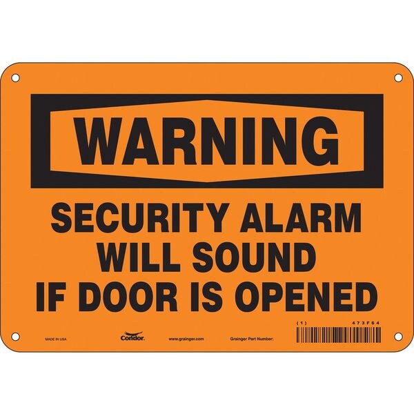 SKU G5644298Categories SafetyDescription Safety Sign, Vertical Rectangle, Number of Printed Sides 1, English, Sign Format Traditional OSHA, Sign Legend Security Alarm Will Sound If Door Is Opened, Sign Legend Background Color Orange, Sign Legend Style TextgraingerSKU: 473F64, mscSKU: , zoro_no: G5644298, mongo_id: 65bbe85f22d7a989a98ee096