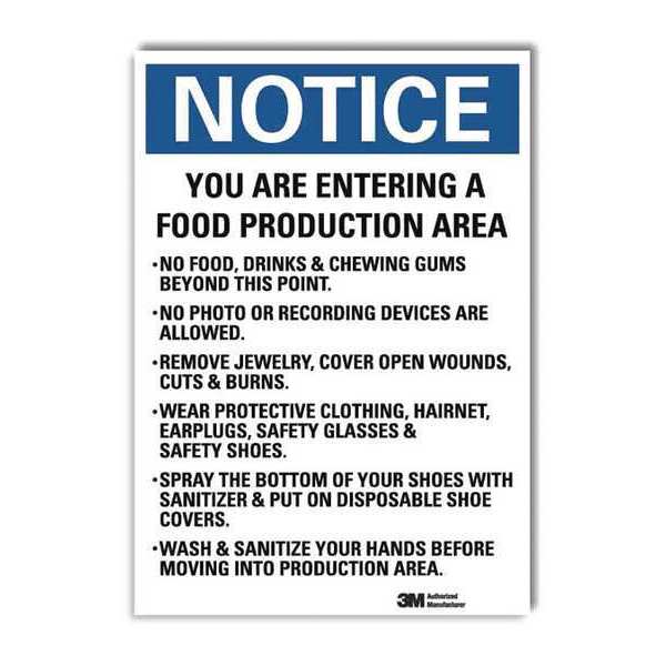 SKU G2755999Categories SafetyDescription Notice Sign, Vertical Rectangle, Number of Printed Sides 1, English, Sign Legend You Are Entering Food Production Area No Food, Drinks And Chewing, Sign Legend Background Color White, Sign Legend Style TextgraingerSKU: 34JZ33, mscSKU: , zoro_no: G2755999, mongo_id: 65bbe88a9a749db8227983d6