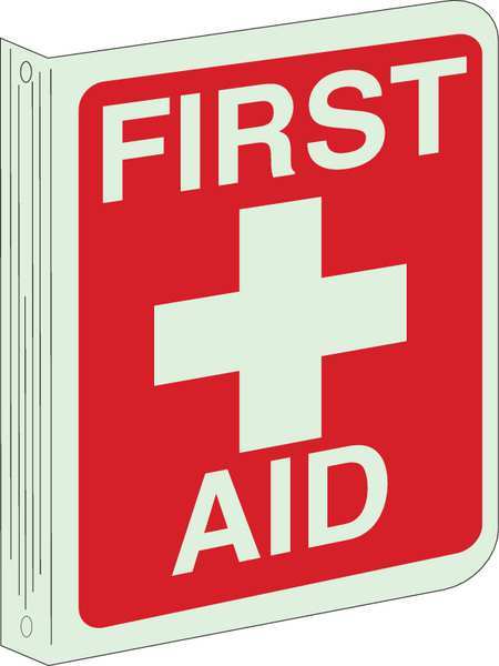 First Aid Sign, 12" Height, 9" Width, Plastic, Rectangle, English