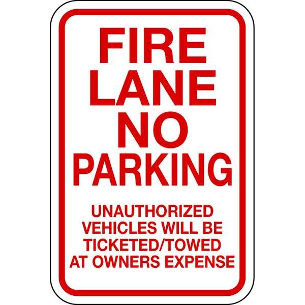 Fire Lane Sign, 18 x 12In, R/WHT, ENG, Text