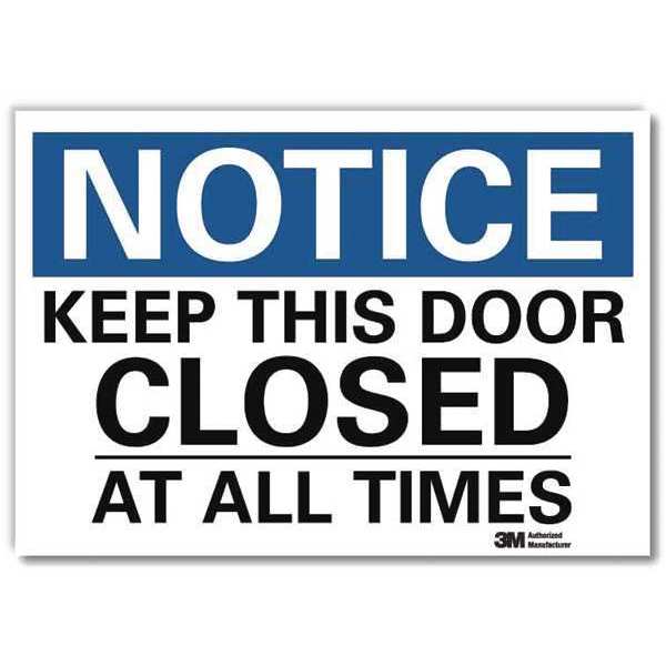 $3.94 / eachWeb priceNotice Sign, 5 in H, 7 in W, Reflective Sheeting, Horizontal Rectangle, English, U5-1299-RD_7X5SKU G2280166Categories SafetyDescription Notice Sign, Horizontal Rectangle, Number of Printed Sides 1, English, Sign Legend Keep This Door Closed At All Times, Sign Legend Background Color White, Sign Legend Style TextgraingerSKU: 34JP61, mscSKU: , zoro_no: G2280166, mongo_id: 65bbe88a9a749db822798209