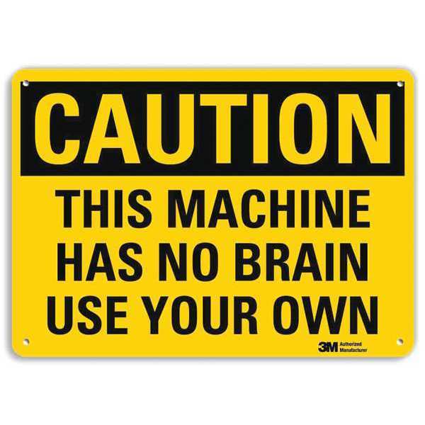 SKU G2718016Categories SafetyDescription Safety Sign, Vertical Rectangle, Number of Printed Sides 1, English, Sign Format Traditional OSHA, Sign Legend This Machine Has No Brain Use Your Own, Sign Legend Background Color Yellow, Sign Legend Style Text$8.74 / eachWeb priceSafety Sign, 7 in Height, 10 in Width, Aluminum, Vertical Rectangle, English, U4-1710-RA_10X7SKU G2718016Categories SafetyDescription Safety Sign, Vertical Rectangle, Number of Printed Sides 1, English, Sign Format Traditional OSHA, Sign Legend This Machine Has No Brain Use Your Own, Sign Legend Background Color Yellow, Sign Legend Style Text$8.74 / eachWeb price -