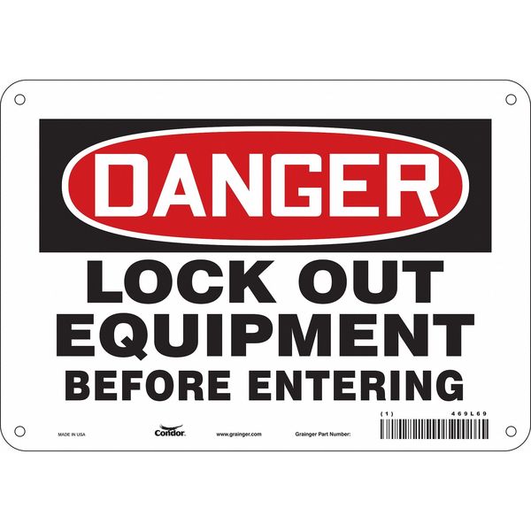 $21.24 / eachWeb priceSafety Sign, 7 in Height, 10 in Width, Aluminum, Vertical Rectangle, English, 469L69SKU G5523703Categories SafetyDescription Safety Sign, Vertical Rectangle, Number of Printed Sides 1, English, Sign Format Traditional OSHA, Sign Legend Lock Out Equipment Before Entering, Sign Legend Background Color White, Sign Legend Style TextgraingerSKU: 469L69, mscSKU: , zoro_no: G5523703, mongo_id: 65bbe7da9a749db82275f158