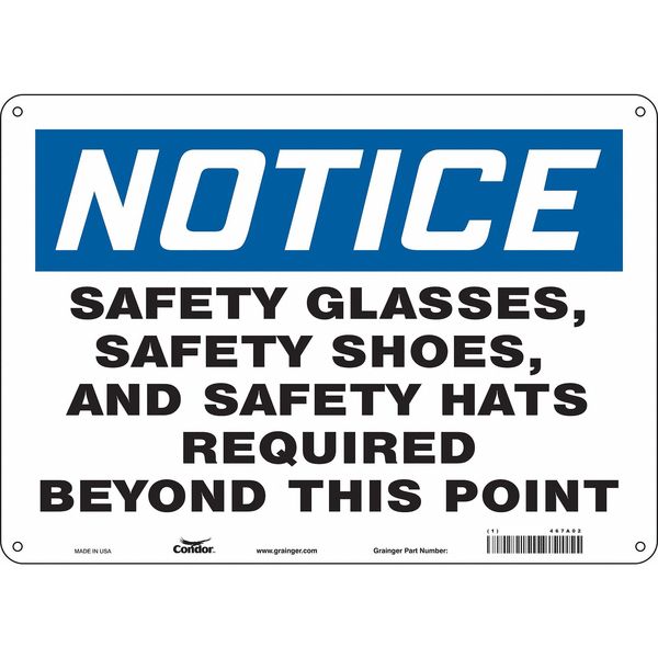 $25.19 / eachWeb priceSafety Sign, 10 in Height, 14 in Width, Aluminum, Horizontal Rectangle, English, 467A02SKU G5102513Categories SafetyDescription Safety Sign, Horizontal Rectangle, Number of Printed Sides 1, English, Sign Format Traditional OSHA, Sign Legend Safety Glasses, Safety Shoes, And Hard Hats Required Beyond This Point, Sign Legend Background Color White, Sign Legend Style TextgraingerSKU: 467A02, mscSKU: , zoro_no: G5102513, mongo_id: 65bbe7da9a749db82275f105