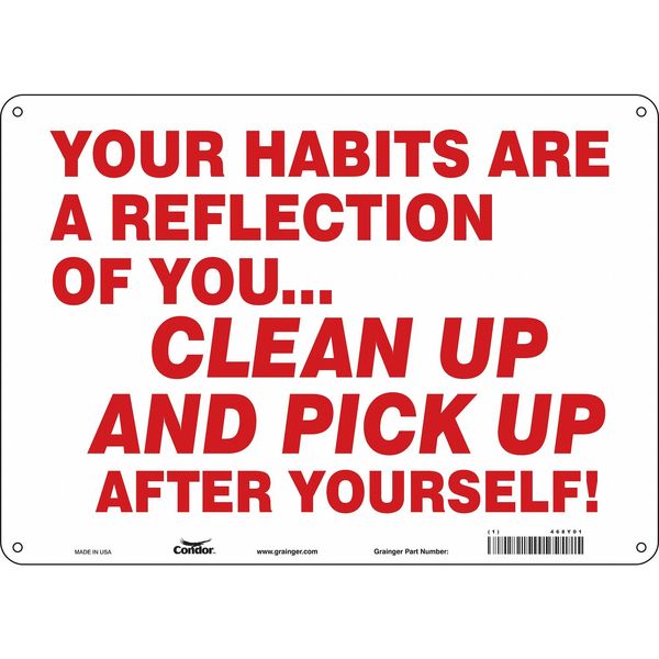 SKU G5271843Categories SafetyDescription Safety Sign, Horizontal Rectangle, Number of Printed Sides 1, English, Sign Legend Your Habits Are A Reflection Of You...Clean Up And Pick Up After Yourself!, Sign Legend Background Color White, Sign Legend Style TextgraingerSKU: 468Y01, mscSKU: , zoro_no: G5271843, mongo_id: 65bbe7da9a749db82275f050