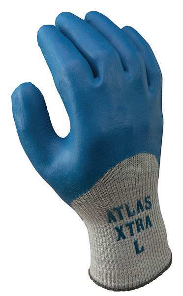 Natural Rubber Latex Coated Gloves, Palm Coverage, Blue/Gray, M, PR