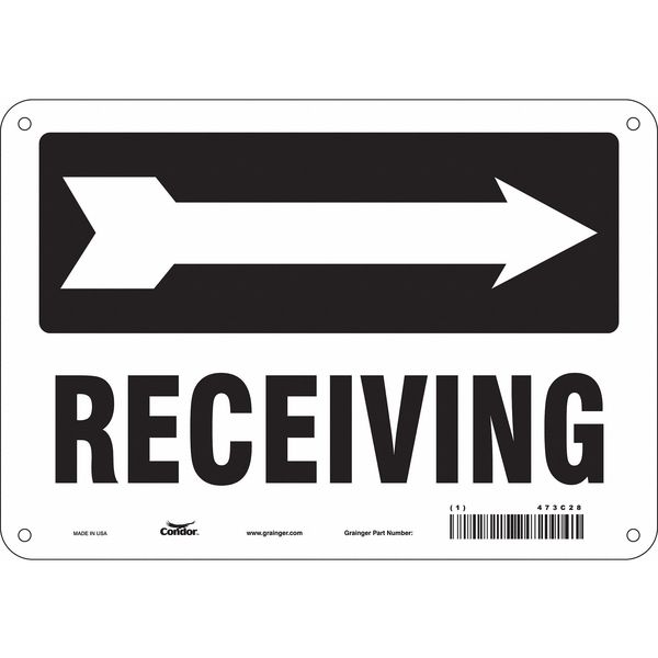 $18.74 / eachWeb priceSafety Sign, 7 in Height, 10 in Width, Aluminum, Vertical Rectangle, English, 473C28SKU G5605122Categories SafetyDescription Safety Sign, Vertical Rectangle, Number of Printed Sides 1, English, Sign Format Other Format, Sign Legend Receiving (Right Arrow), Sign Legend Background Color White, Sign Legend Style Symbol and TextgraingerSKU: 473C28, mscSKU: , zoro_no: G5605122, mongo_id: 65bbe7da9a749db82275f14e