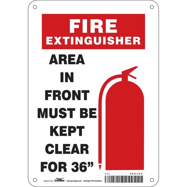 $14.44 / eachWeb priceSafety Sign, 10 in Height, 7 in Width, Aluminum, Horizontal Rectangle, English, 485J50SKU G6244432Categories SafetyDescription Safety Sign, Horizontal Rectangle, Number of Printed Sides 1, English, Sign Format Traditional OSHA, Sign Legend Fire Extinguisher Area In Front Must Be Kept Clear For 36 In., Sign Legend Background Color Red, White, Sign Legend Style Symbol and TextgraingerSKU: 485J50, mscSKU: , zoro_no: G6244432, mongo_id: 65bbe7da9a749db82275f07f