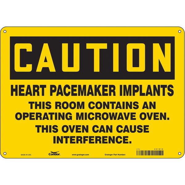 $25.19 / eachWeb priceSafety Sign, 10 in Height, 14 in Width, Aluminum, Horizontal Rectangle, English, 451X16SKU G5902211Categories SafetyDescription Safety Sign, Horizontal Rectangle, Number of Printed Sides 1, English, Sign Format Traditional OSHA, Sign Legend Heart Pacemaker Implants This Room Contains An Operating Microwave Oven This Oven Can Cause Interference, Sign Legend Background Color Yellow, Sign Legend Style TextgraingerSKU: 451X16, mscSKU: , zoro_no: G5902211, mongo_id: 65bbe7da9a749db82275f017