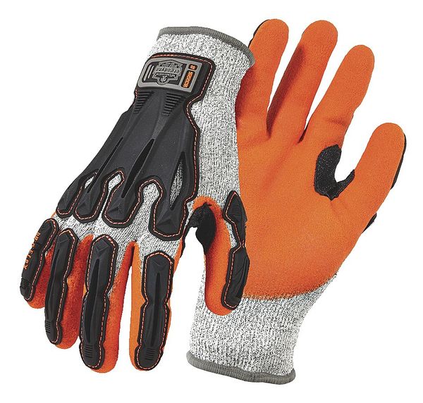 Impact Gloves, Level 5, Gray/Orange, 2XL, PR