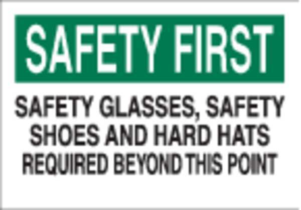 SKU G7429429Categories SafetyDescription Personal Protection Sign, Sign Subject Matter Personal Protection, Height 10 in, Width 14 in, Sign Material Aluminum, Sign Mounting Style With Mounting Holes, Header Safety First, Legend Safety Glasses, Safety Shoes and Hard Hats Required Beyond This Point, Printed Language English, Sign Shape Rectangle$32.11 / eachWeb pricePersonal Protection Sign, 10"x14", Alum, Standards: ANSI Z53.1-1967; ANSI Z535-2006; OSHA 1910.145SKU G7429429Categories SafetyDescription Personal Protection Sign, Sign Subject Matter Personal Protection, Height 10 in, Width 14 in, Sign Material Aluminum, Sign Mounting Style With Mounting Holes, Header Safety First, Legend Safety Glasses, Safety Shoes and Hard Hats Required Beyond This Point, Printed Language English, Sign Shape Rectangle$32.11 / eachWeb price -