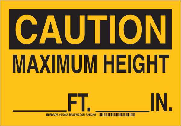 SKU G7382790Categories SafetyDescription Caution Sign, Sign Subject Matter Overhead Clearance, Height 10 In., Width 14 In., Sign Material Plastic, Header Caution, Legend Maximum Height ____Ft. ____In., Printed Language English, Sign Shape Rectangle$17.49 / eachWeb priceCaution Sign, 10X14", Black/Yellow, 127660SKU G7382790Categories SafetyDescription Caution Sign, Sign Subject Matter Overhead Clearance, Height 10 In., Width 14 In., Sign Material Plastic, Header Caution, Legend Maximum Height ____Ft. ____In., Printed Language English, Sign Shape Rectangle$17.49 / eachWeb price -