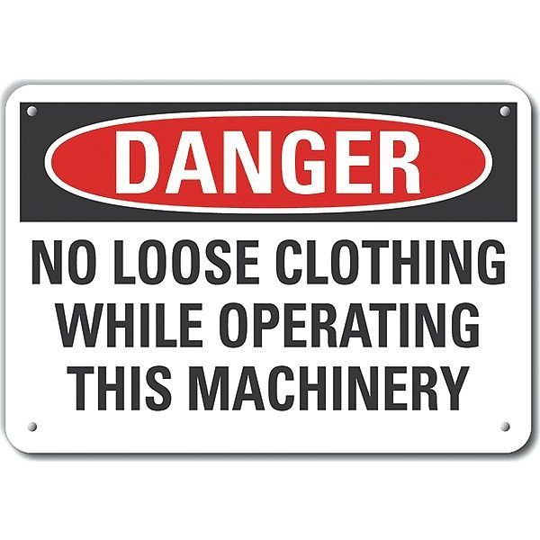 SKU G9497568Categories SafetyDescription Plastic Machine & Operation Danger Sign, Horizontal Rectangle, Number of Printed Sides 1, English, Sign Format Traditional OSHA, Sign Legend No Loose Clothing While Operating This Machinery, Sign Legend Background Color White, Sign Legend Style TextgraingerSKU: 64RT56, mscSKU: , zoro_no: G9497568, mongo_id: 65bbe76c3aaddbd5a90935ba