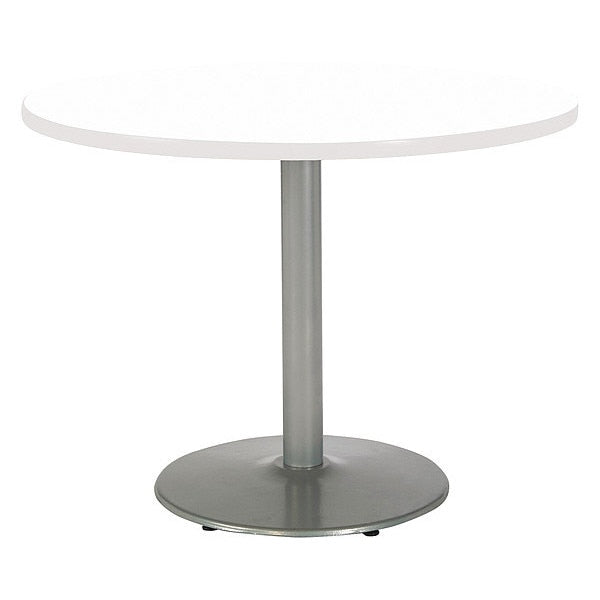 Round Ped Table, Designer Wh/Silver, 42"Dx29"H, 42" W, 29" (Cafe Height) H, HPL Top, Designer White