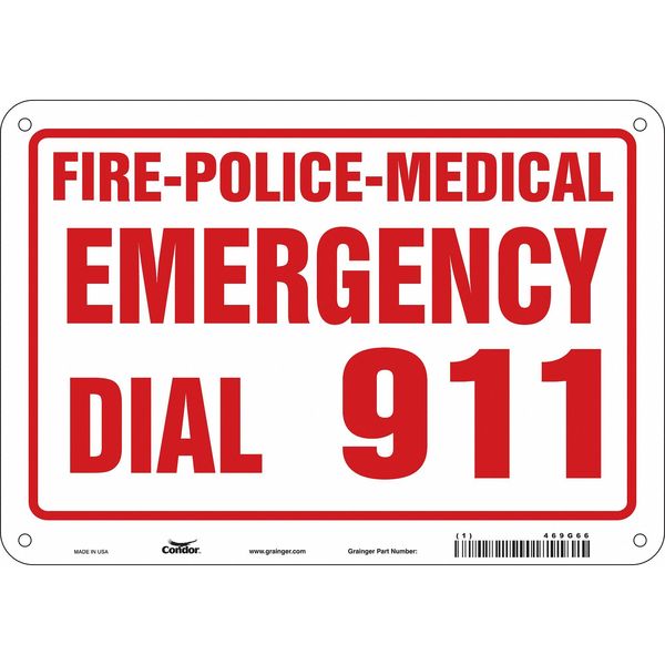 SKU G5637788Categories SafetyDescription SAFETY SIGN FIRE AND EMERGENCY, Vertical Rectangle, Number of Printed Sides 1, English, Sign Legend Fire-Police-Medical Emergency Dial 911, Sign Legend Background Color White, Sign Legend Style TextgraingerSKU: 469G66, mscSKU: , zoro_no: G5637788, mongo_id: 65bbe8069a749db82276d493